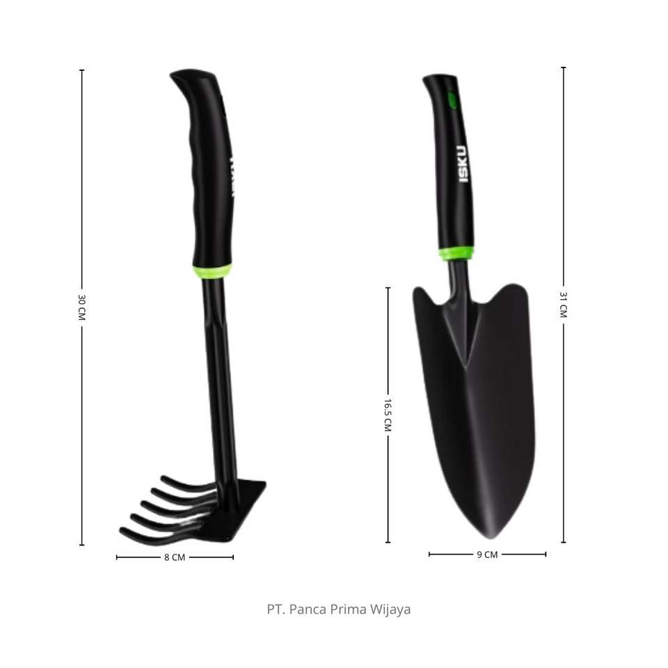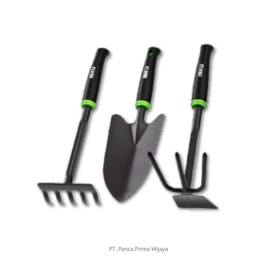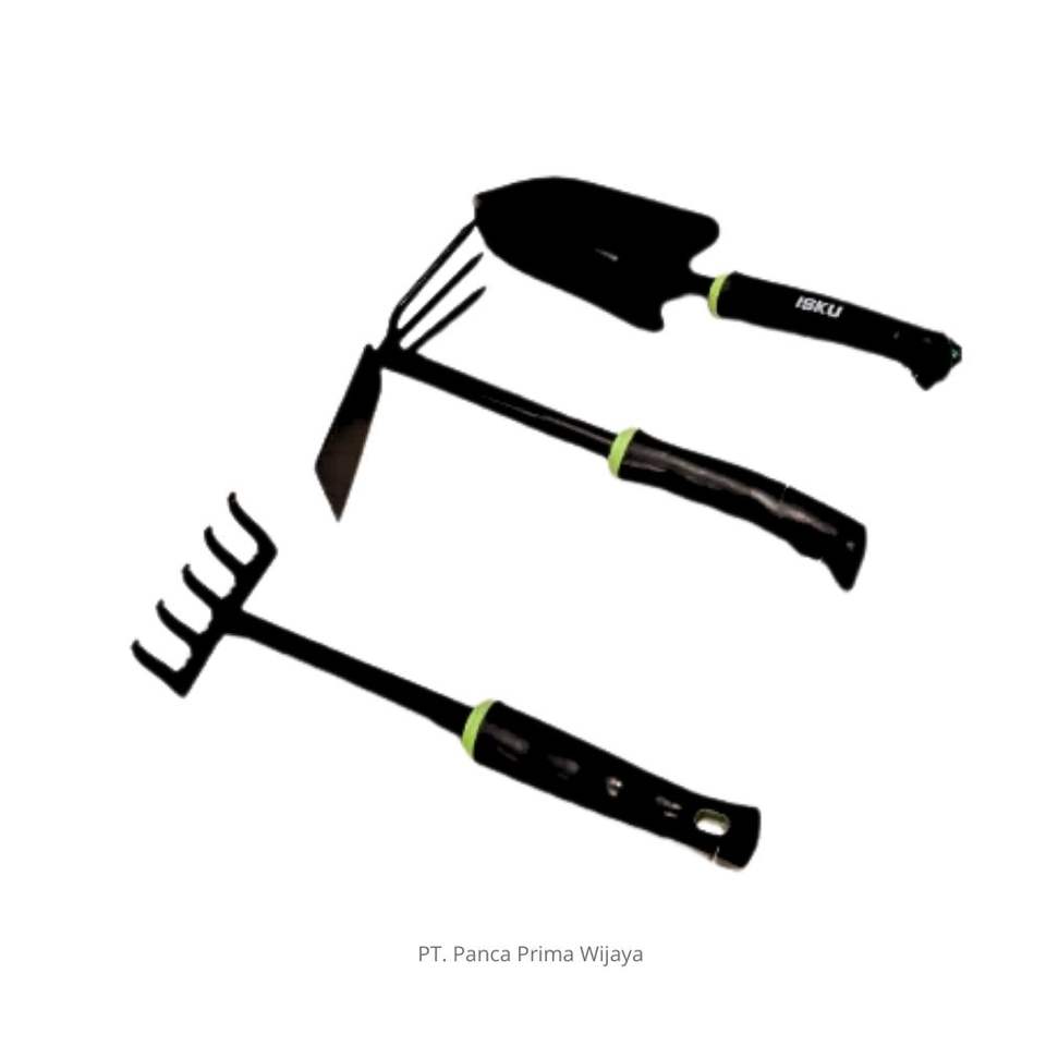 ชุดเครื่องมือดูแลสวนคุณภาพสูง ISKU 3 ชิ้น ด้ามจับโลหะเหล็กกล้าคาร์บอนเสริมแรง พร้อมจอบ พลั่ว และคราด ออกแบบตามหลักสรีรศาสตร์ ผลิตตามมาตรฐาน OEM