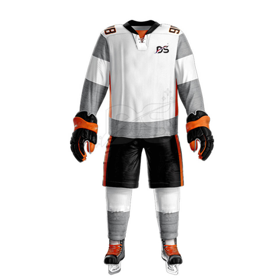 ชุดยูนิฟอร์มฮอกกี้น้ำแข็งคุณภาพสูง พร้อมชื่อ หมายเลข และโลโก้แบบกำหนดเอง - เป็นมิตรกับสิ่งแวดล้อม ผลิตจากโพลีเอสเตอร์ 100% สำหรับสโมสรและลีก
