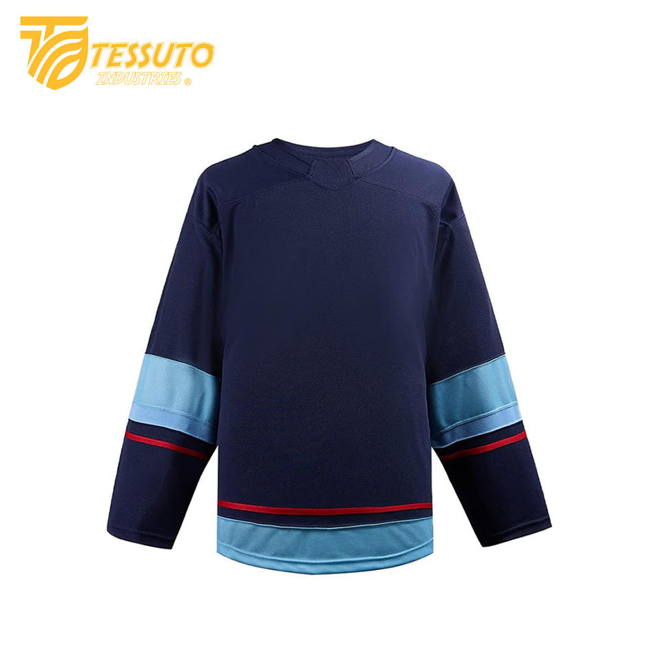 ชุดกีฬาฮอกกี้น้ำแข็งคุณภาพสูง ผลิตจากโพลีเอสเตอร์ 100% น้ำหนักเบา รับสกรีนโลโก้ ชื่อทีม บริการ OEM ระบายอากาศได้ดี แห้งเร็ว