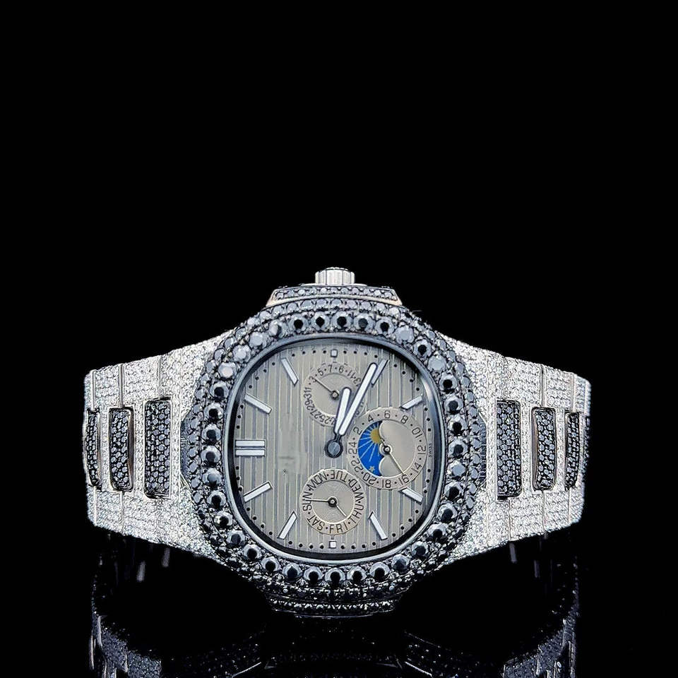 นาฬิกาข้อมือผู้ชายสแตนเลสคุณภาพสูง ประดับเพชรโมอิสซาไนต์ ระบบไขลาน ดีไซน์หรูหรา สไตล์ฮิปฮอป