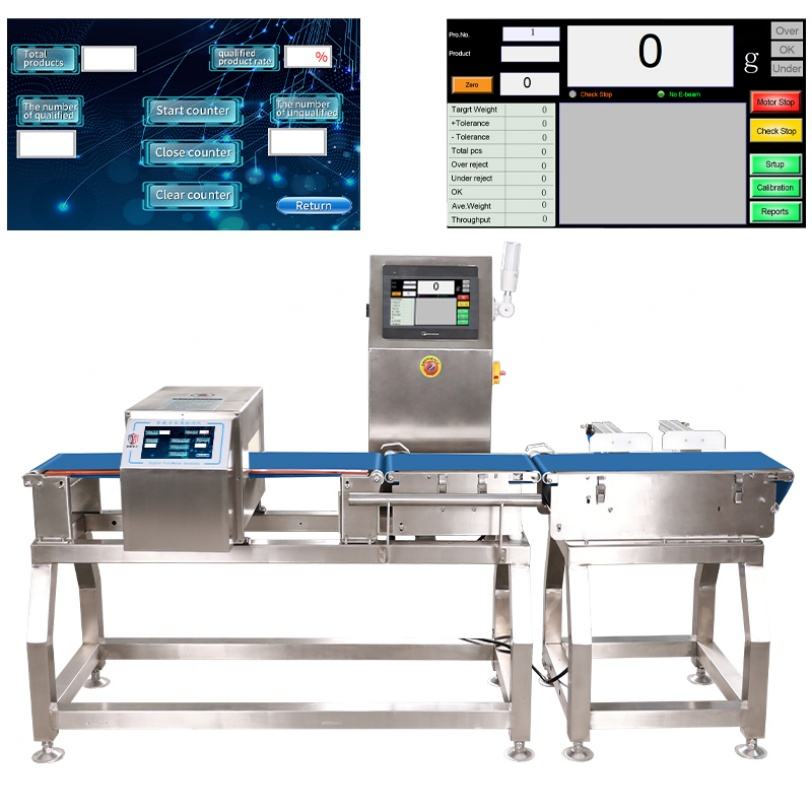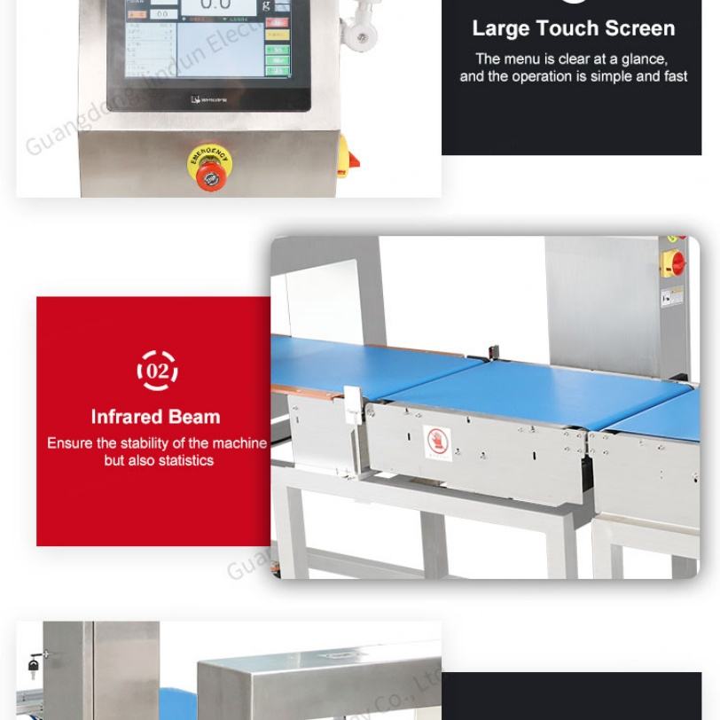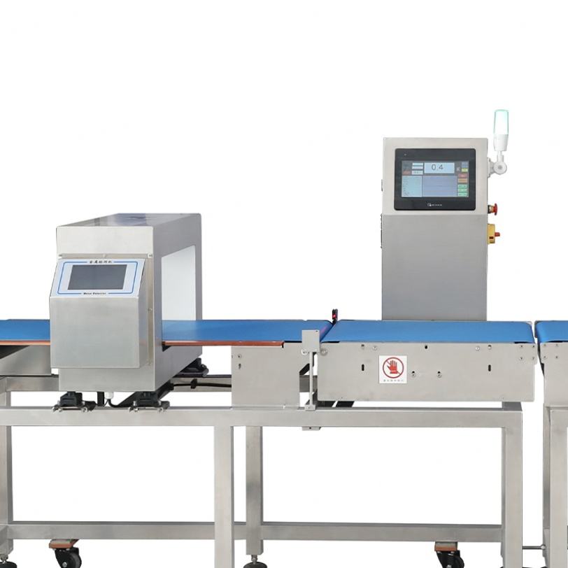 เครื่องตรวจจับโลหะในอาหารคุณภาพสูง JINDUN JD-YW801 ระบบตรวจสอบน้ำหนักแบบอินไลน์ ผลิตจากสแตนเลส 304SUS พร้อมหน้าจอสัมผัส