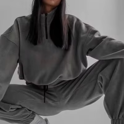 เสื้อฮู้ดสวมหัวแขนยาวผ้าฝ้ายสำหรับผู้หญิงเสื้อเอวลอยมีฮู้ดสีพื้นโลโก้ตามสั่ง