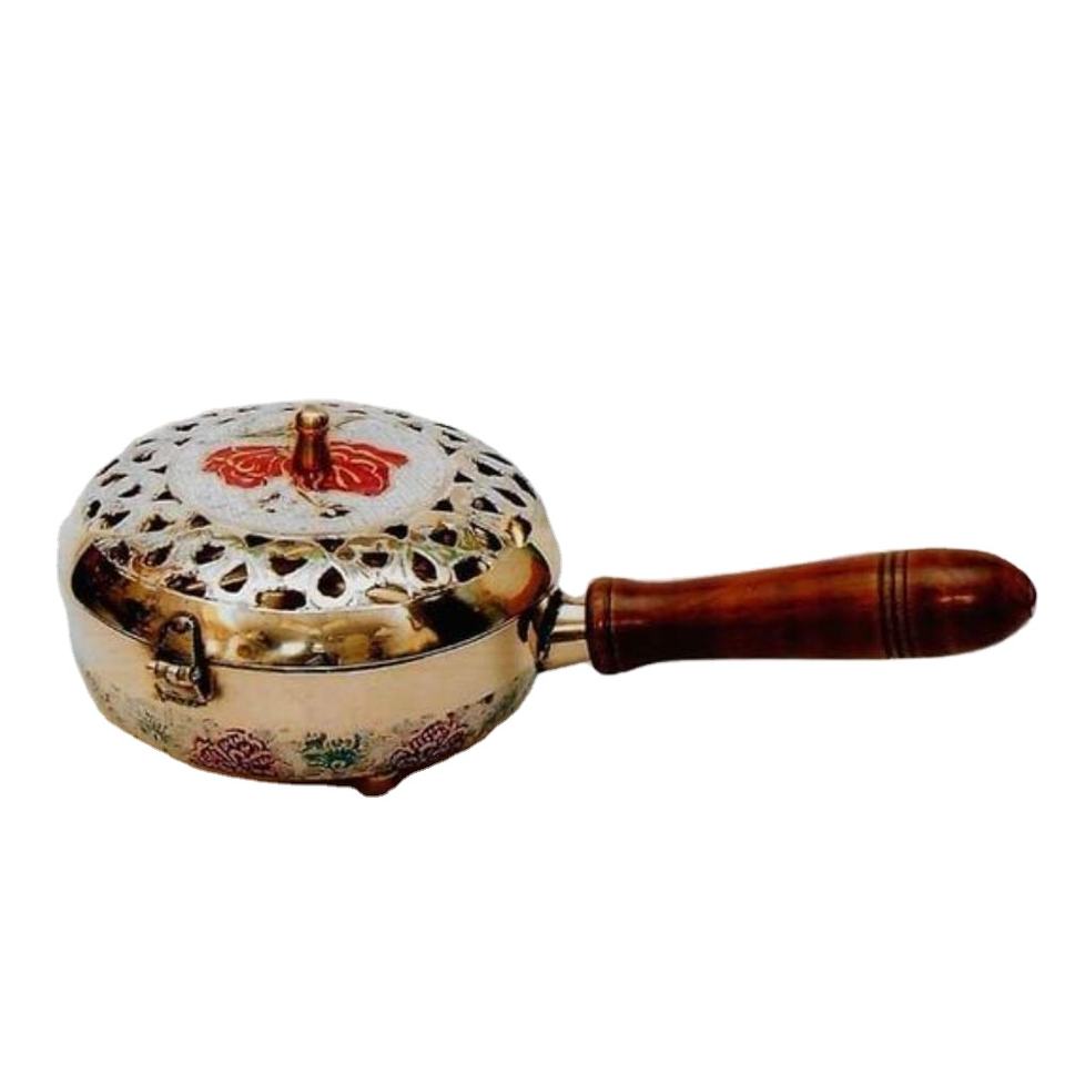 เครื่องเผาธูปทองเหลืองด้ามไม้อะคาเซียเครื่องหอมสีทองสำหรับตกแต่งเทศกาลดิวาลี