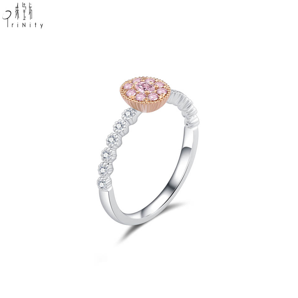 แหวนเพชรชมพูคุณภาพสูง สวยงามน่าทึ่ง ซีรีส์แหวนหมั้นทองคำแท้ 18K แหวนเพชรชมพูธรรมชาติแท้