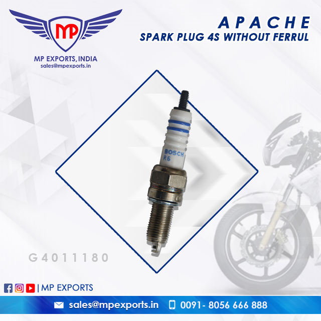 High Quality Indian 4S Spark Plug for TVS APACHE RTR 2W without Ferrul Top Motorcycle Accessory Spare Parts Available for Sale