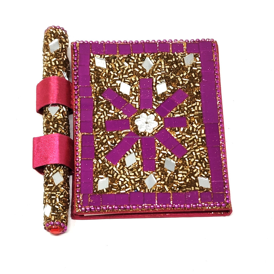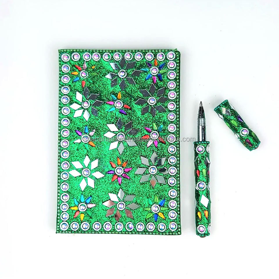 สมุดบันทึกสีน้ำเงินประดับลูกปัดและกลิตเตอร์คุณภาพสูง ทำด้วยมือจากอินเดีย พร้อมปากกา สำหรับเขียนบันทึกส่วนตัวและใช้เป็นของขวัญ