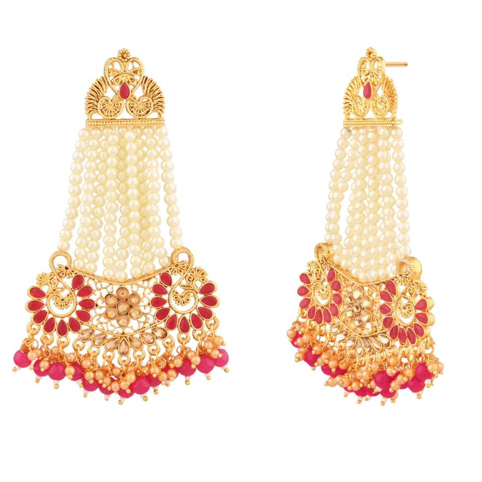 โคมระย้ามีลวดลายยาวขนาดใหญ่พร้อมต่างหูชุบทอง