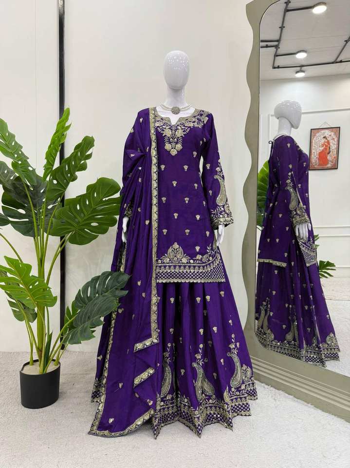 ชุดสูทสำหรับสุภาพสตรีสีม่วงสำหรับสตรีสไตล์ปากีสถานจากอินเดียพร้อมด้วยชุดปาร์ตี้ชารารารารารารารารา