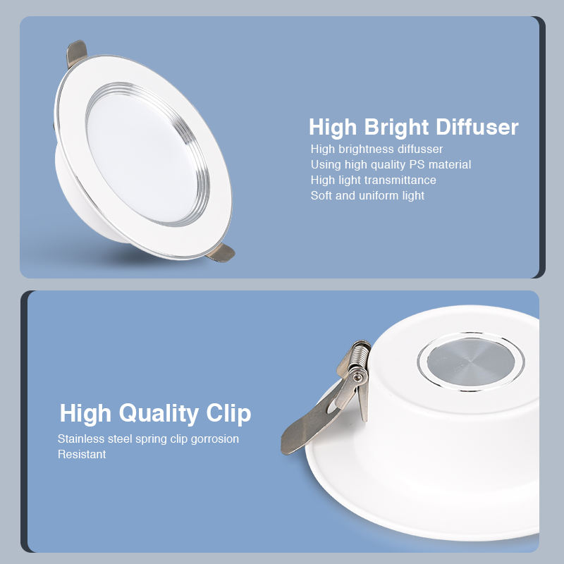 ไฟดาวน์ไลท์ LED แบบกลมประหยัดพลังงานสามสีสำหรับใช้ในอาคาร