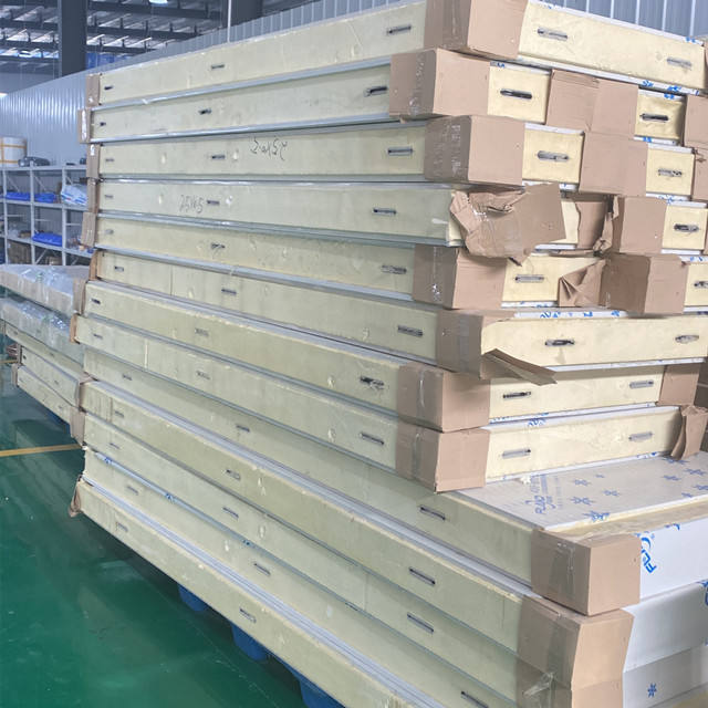 แผงฉนวน PU แบบแข็งหนา15มม. แผงแซนวิชทำจากเหล็กโพลียูรีเทนหนา0.4มม. ดีไซน์ทางอุตสาหกรรมสำหรับห้องเย็น