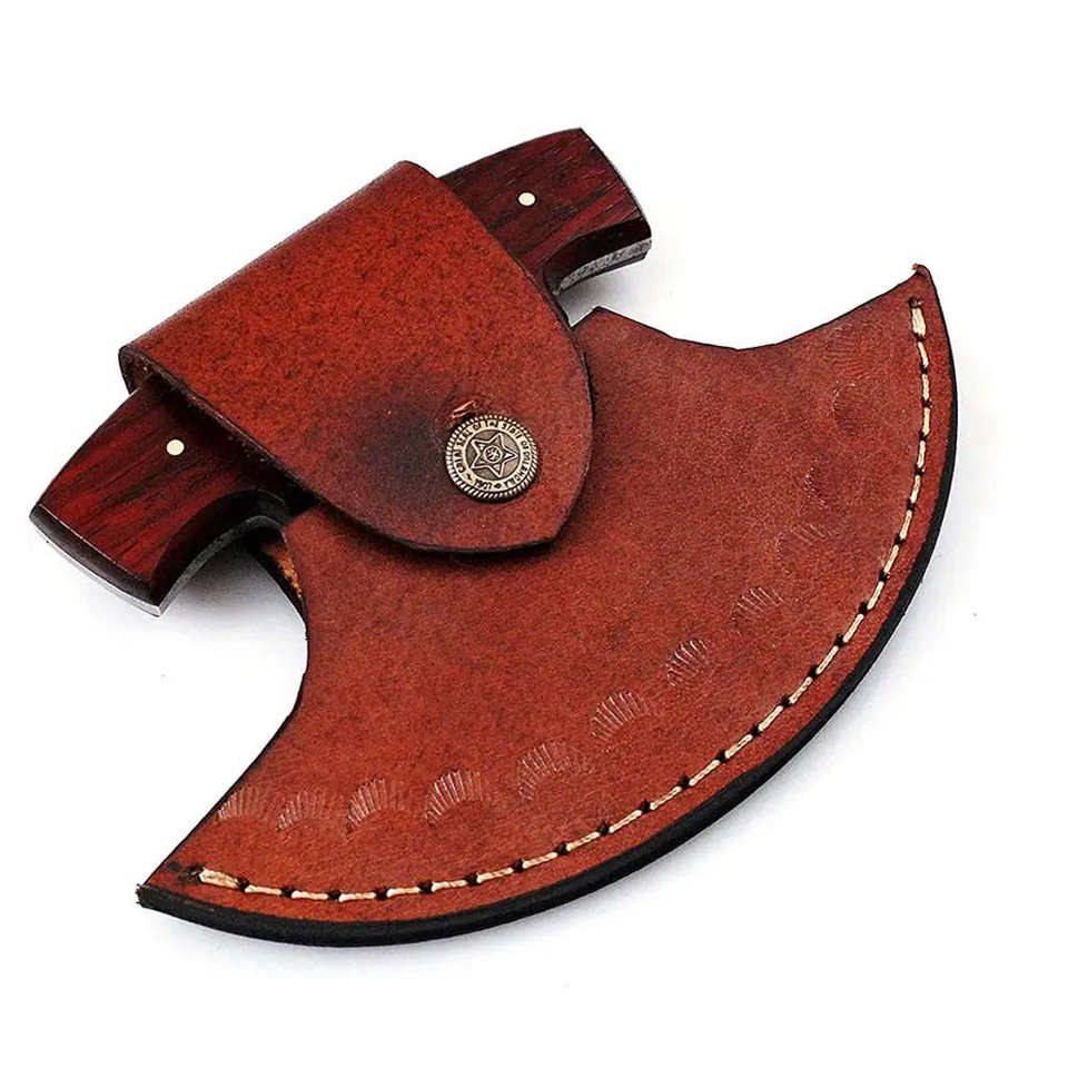 ที่ตัดพิซซ่าคุณภาพสูงแบบ DIY สำหรับอุตสาหกรรม ด้ามไม้โรสวูด ออกแบบโลโก้ได้เอง ใบมีดเหล็กกล้าคาร์บอนสูง รูปทรงหัวขวาน แบนด้านหลัง ขนาด 10 นิ้ว