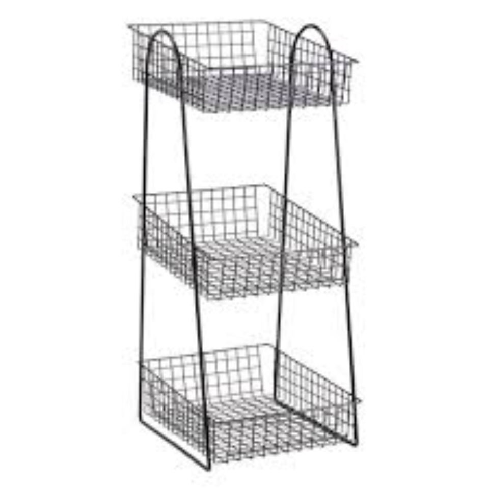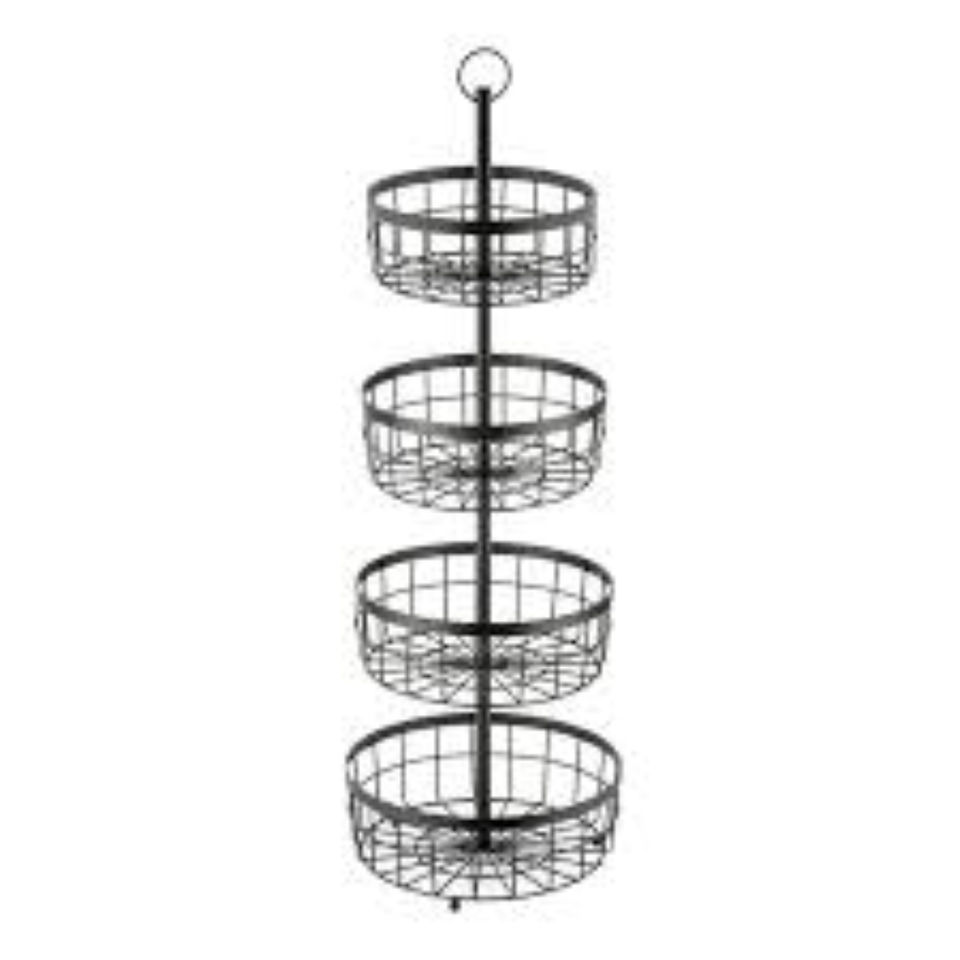 ตะกร้าผลไม้ทรงกลม 3 ชั้น ดีไซน์ลวดบิด ทำจากเหล็กบรอนซ์คุณภาพสูง พร้อมหูจับ สำหรับจัดเก็บบนโต๊ะในครัว