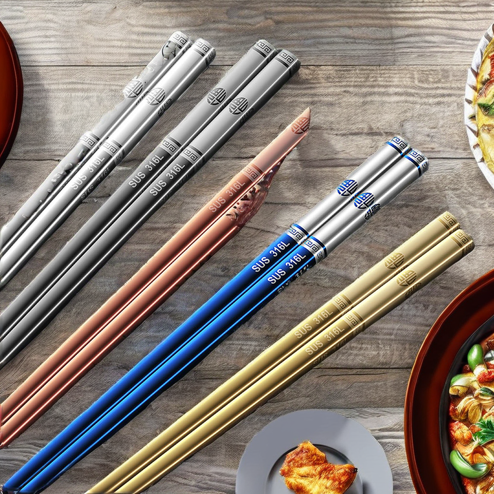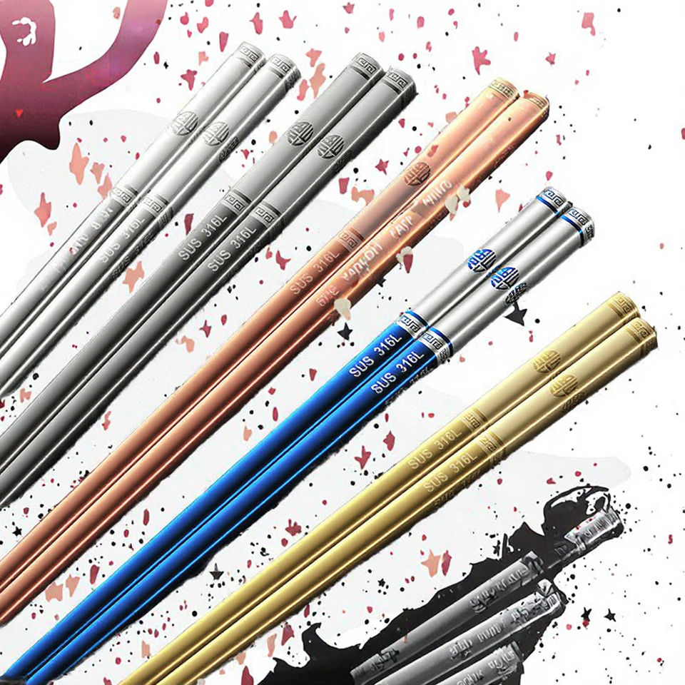 ตะเกียบเหล็กคุณภาพสูง Ironx ผลิตในจีน ทำจากสแตนเลส 316 จำนวน 5 คู่ ของแจก ดีไซน์คลาสสิก Kuaizifuzikuai316