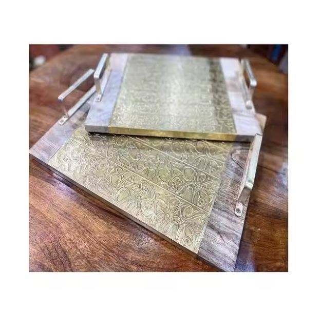ถาดเสิร์ฟอาหารอิสลามถาดโลหะไม้สำหรับซัพพลายเออร์ขายส่ง