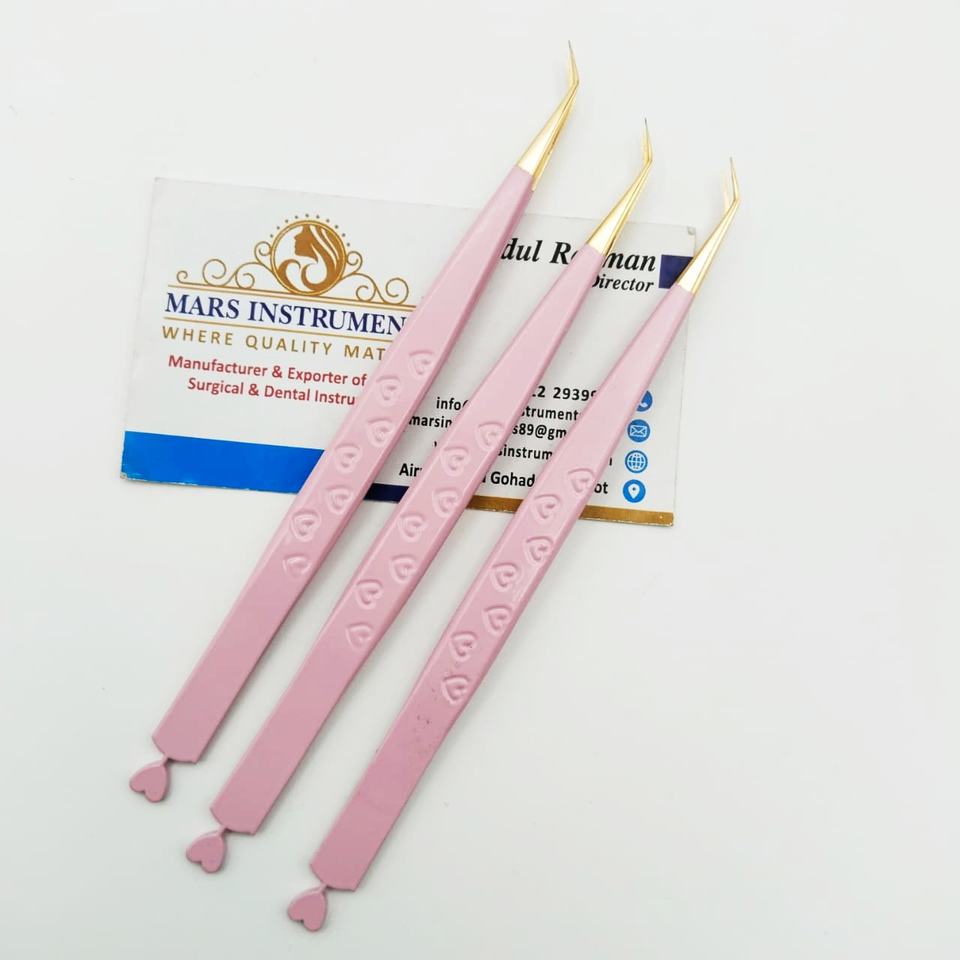 แหนบต่อขนตาปลอมสีชมพูปลายพิมพ์ลายหัวใจสีทองแหนบต่อขนตาปลอมแบบแยกสีล้วน