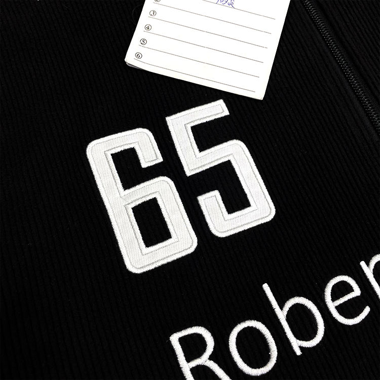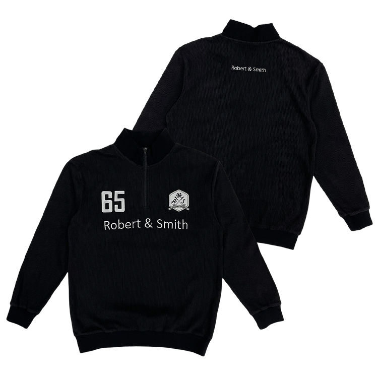 เสื้อสเวตเตอร์คอปกซิป1/4แจ็กเก็ตผ้าลูกฟูกปักลาย
