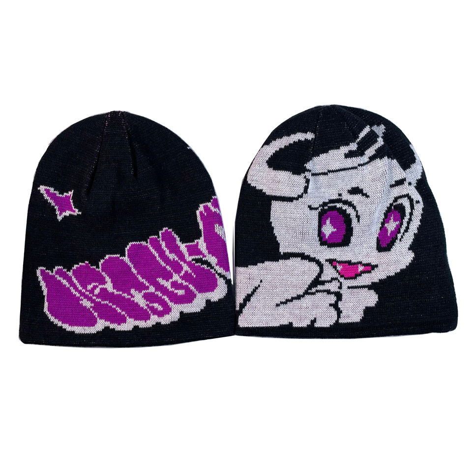 หมวกบีนนี่คอตตอนถักผ้าแจ็คการ์ดพิมพ์ลายการ์ตูนสำหรับสวมใส่เดินชายหาดในฤดูหนาวดีไซน์3D ออกแบบได้ตามที่ต้องการ