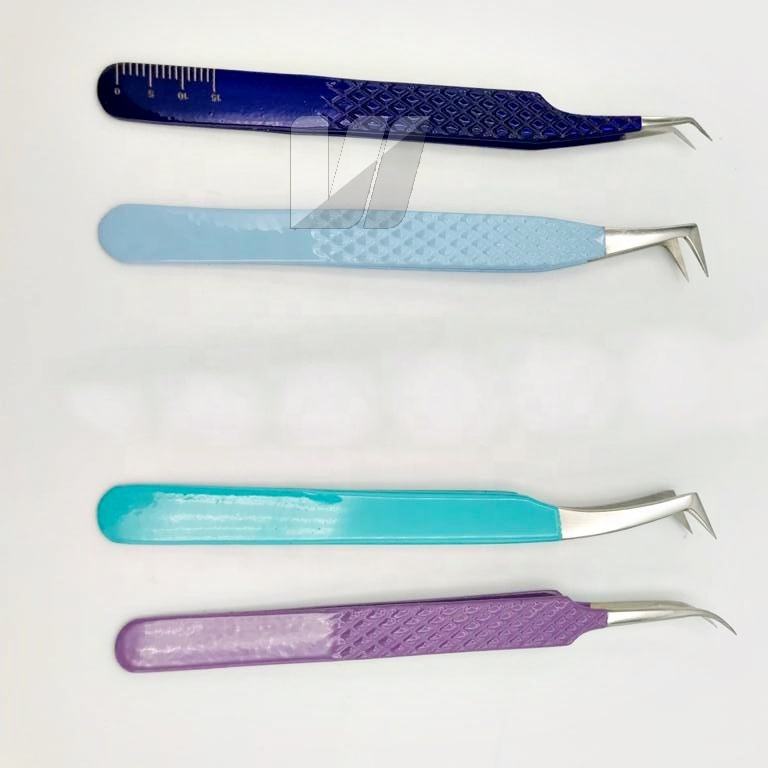 คีมหนีบขนตาปลอมทำจากสเตนเลสแบบญี่ปุ่นเคลือบสีติดเพชรทนทานออกแบบโลโก้ได้ตามที่ต้องการ