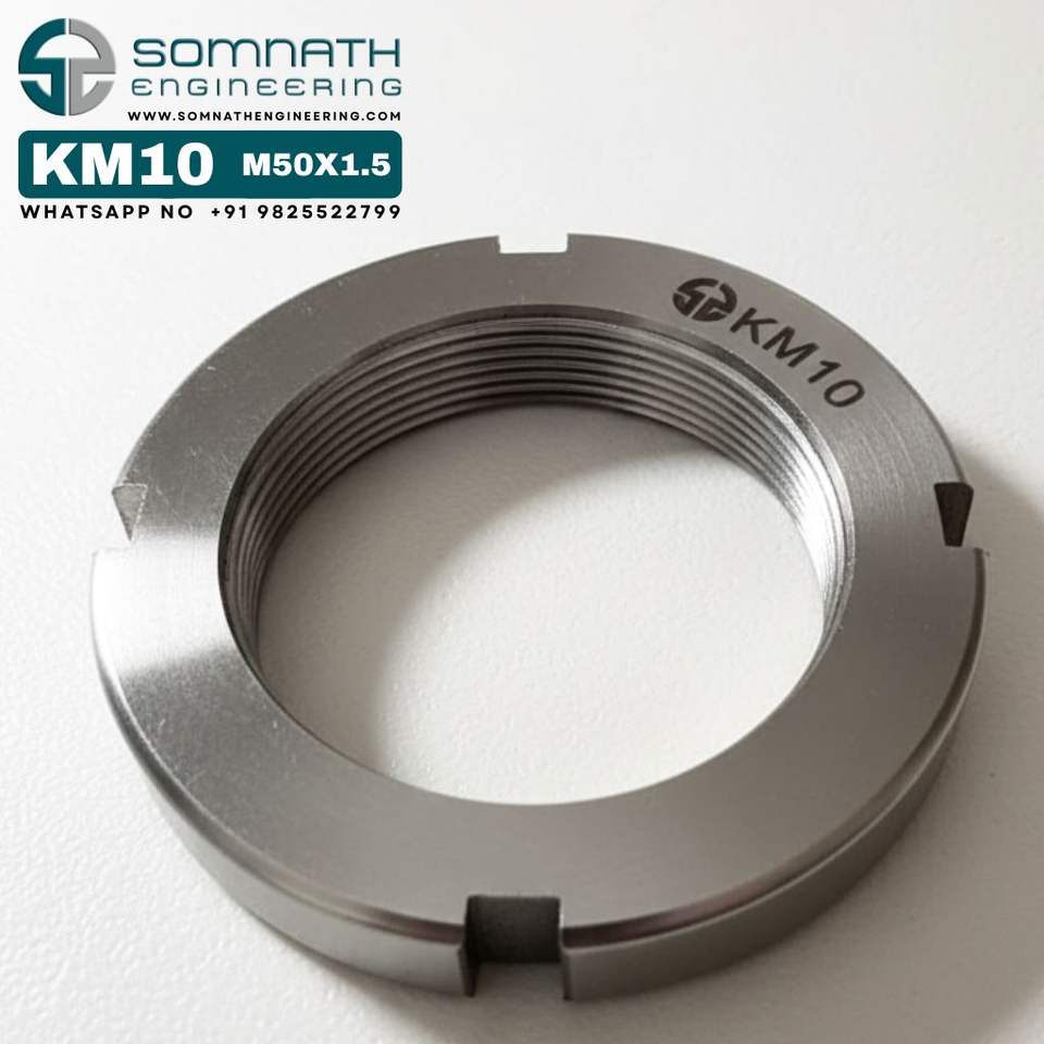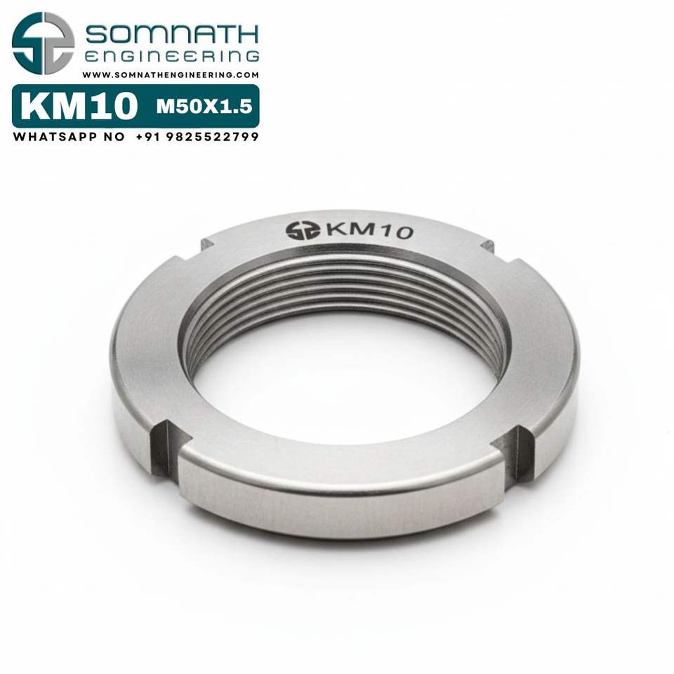 น็อตล็อค KM10 คุณภาพสูง สำหรับล็อคเพลาแบริ่งแบบเมตริก ให้การยึดที่มั่นคง ผลิตจากสแตนเลส
