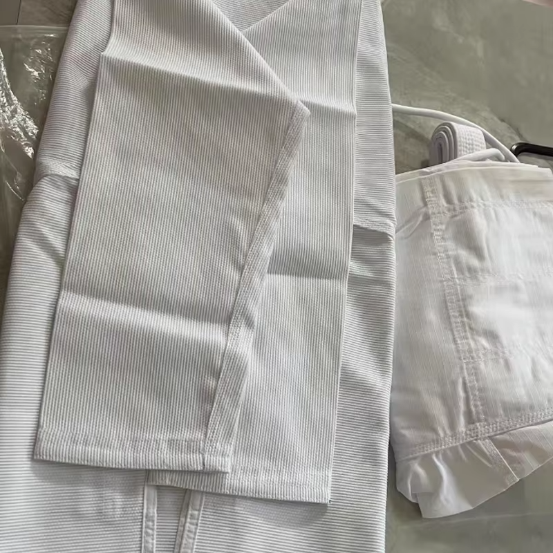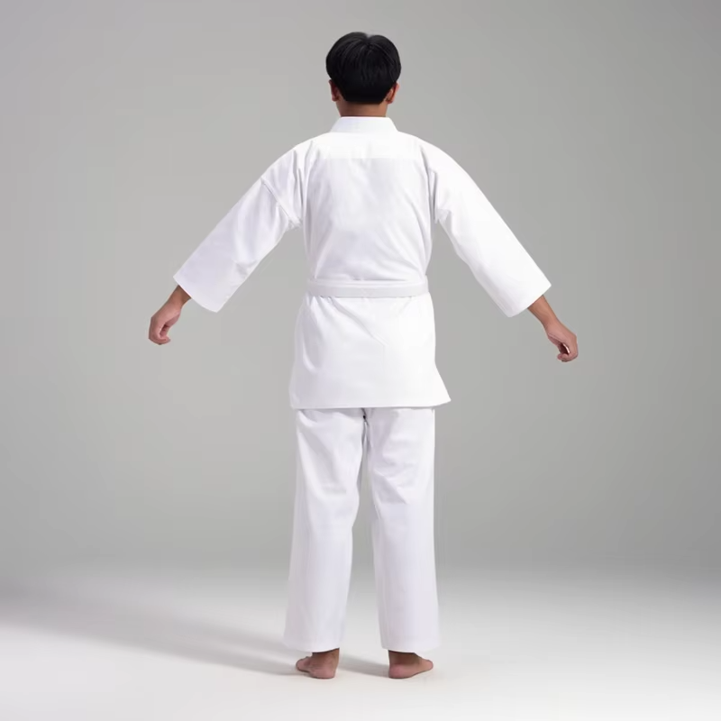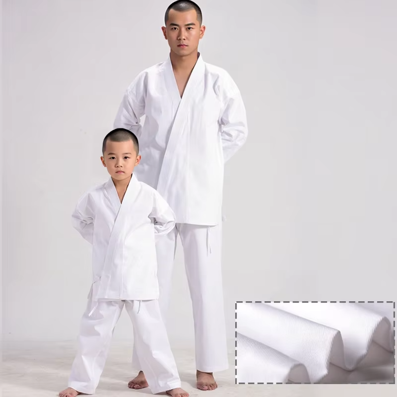 ชุดคาราเต้คุณภาพสูงสำหรับฝึกซ้อมและการแข่งขัน ปักโลโก้ตามสั่ง พร้อมเข็มขัด