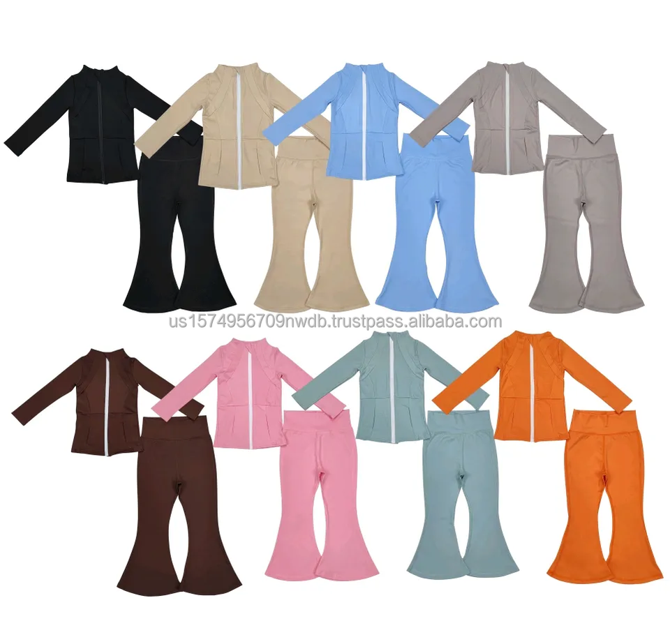 ชุดเสื้อผ้าสำหรับเล่นกีฬาสำหรับเด็กผู้หญิงชุดเสื้อผ้าสำหรับเล่นกีฬาแขนยาวมีซิปและกางเกงขายาวสีน้ำตาล