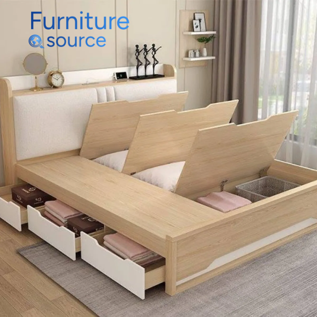 เตียงอัจฉริยะขนาดคิงไซส์คุณภาพสูงพร้อมลิ้นชักเก็บไม้จริง | เตียงไม้ทนทานทันสมัยสำหรับเวียดนาม