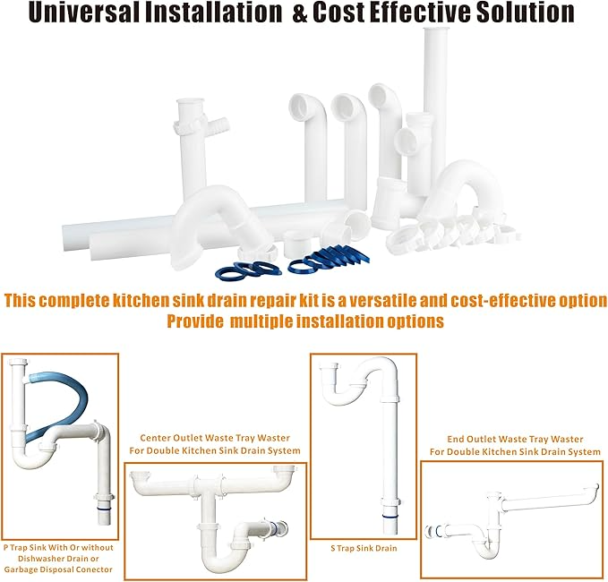 อุปกรณ์ท่อระบายน้ำอ่างล้างจานคุณภาพสูงแบบสองหัว พร้อมจุกปิดและท่อขวดดักกลิ่น
