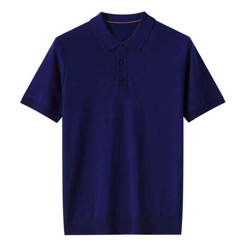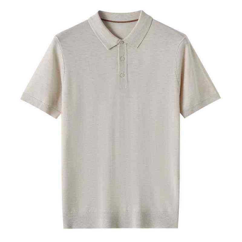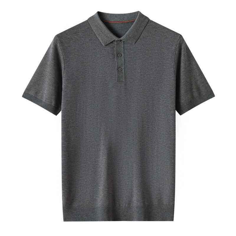 เสื้อโปโลไหมพรมคุณภาพสูงสำหรับผู้ชาย ปักโลโก้ได้ เสื้อโปโลไหมพรมแขนสั้นบางสำหรับผู้ชาย