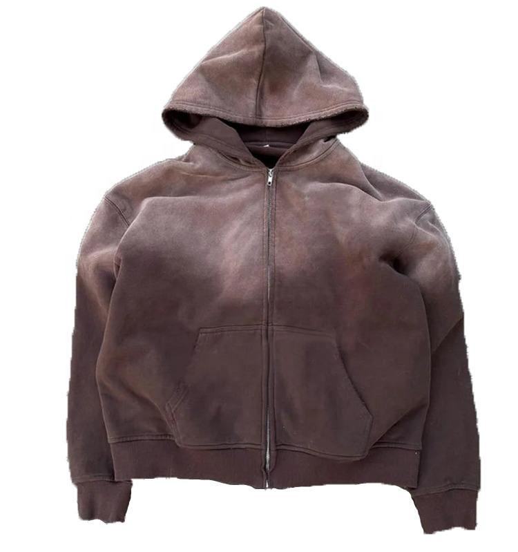 ชุดฮู้ดดี้ผ้าฝรั่งเศสเทอร์รี่ทรงวินเทจลุคย้อมสีแบบแอซิดวอช คุณภาพสูง ผลิตจากผ้าฝ้ายถัก สำหรับผู้ชาย พร้อมกางเกงจ็อกเกอร์ทรงบาน พร้อมลายพิมพ์ DTG