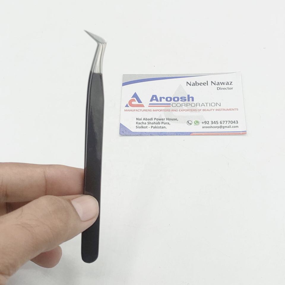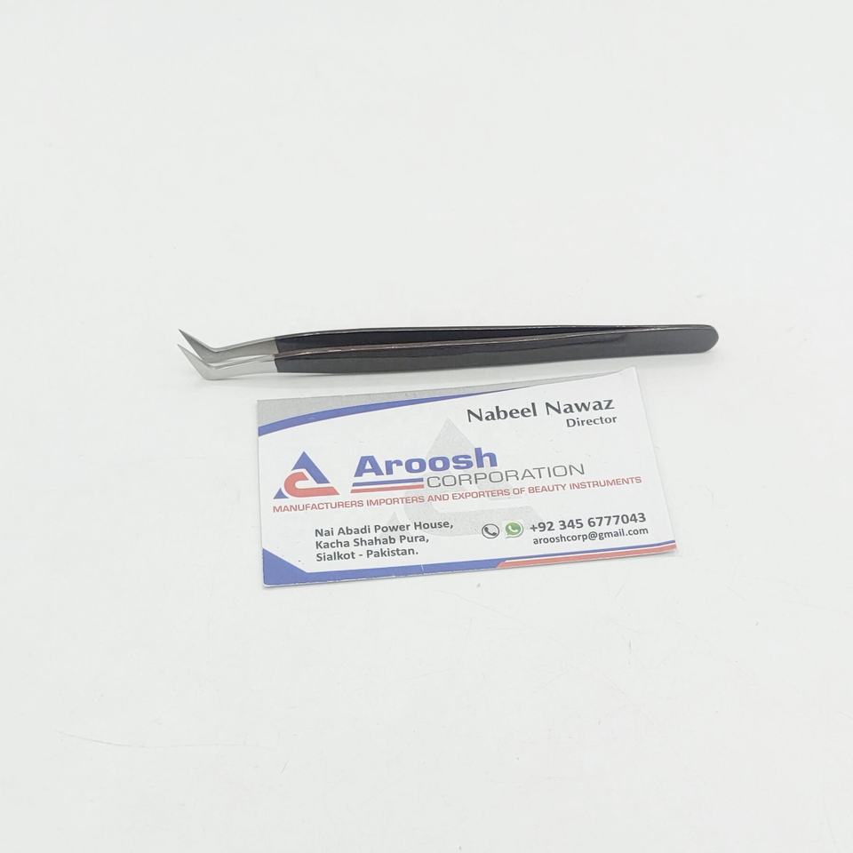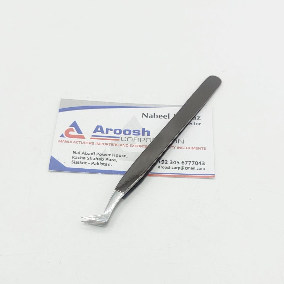 แหนบปลายแหลมรูปตัว L คุณภาพสูงปลายแหลมสีน้ำตาลเข้มเหล็กแบบยั่งยืนสำหรับการต่อขนตาแหนบพลาสมาแบบขายส่ง