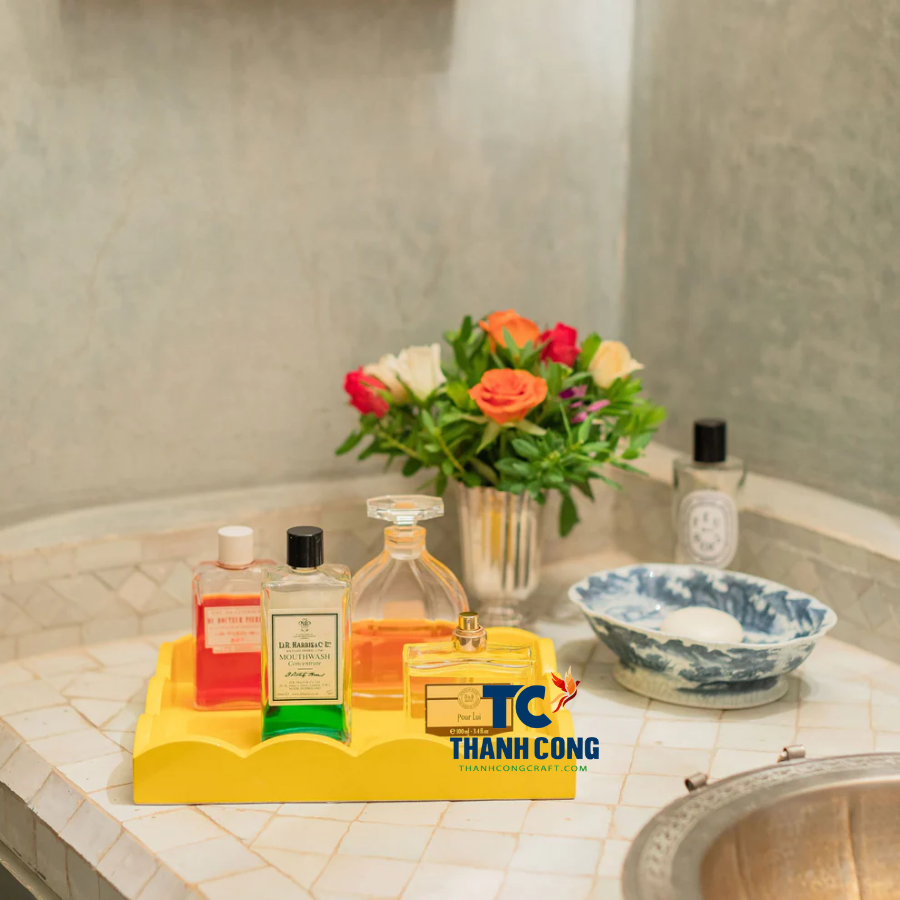 ถาดใส่แล็คเกอร์คุณภาพสูงทำด้วยมือสไตล์เวียดนามสำหรับการตกแต่งห้องรับประทานอาหารที่หรูหราและการนำเสนอรูมเซอร์วิสที่หรูหราของโรงแรม