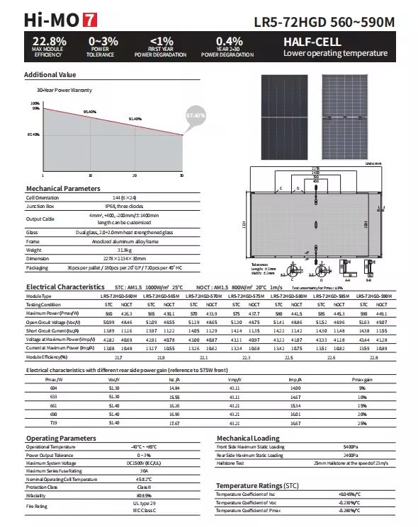 หมายเลขรุ่น:Hi-MO 7 LR5-72HGD 560-590W