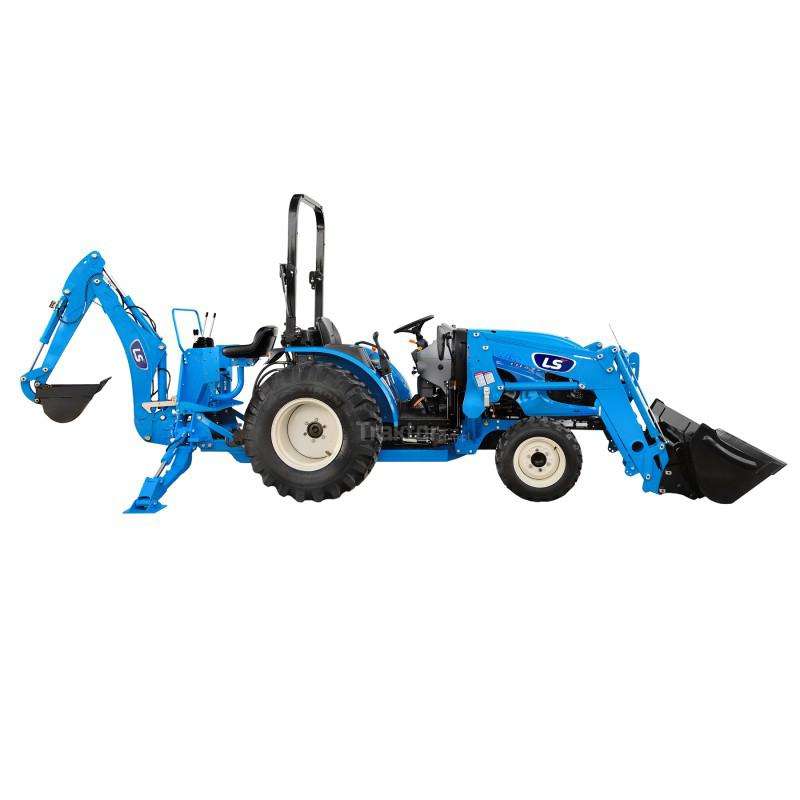 lawn mower with front loader and backhoe