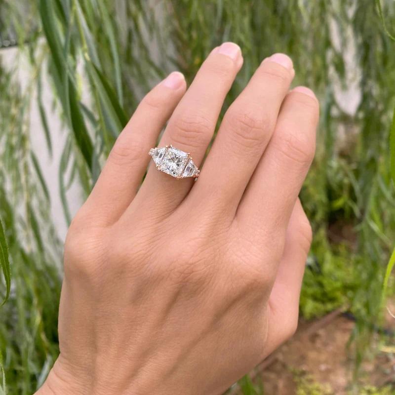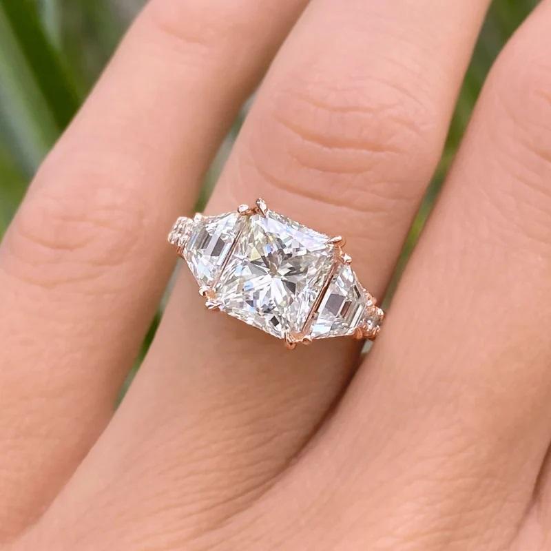 แหวนเพชรทรงรัศมีคุณภาพสูง ผลิตในห้องปฏิบัติการ ตัวเรือนทองคำขาว 14K ประดับเพชรแบบ Pave Setting สำหรับงานหมั้น งานแต่งงาน งานเลี้ยง หรือเป็นเครื่องประดับ Eternity Vermeil