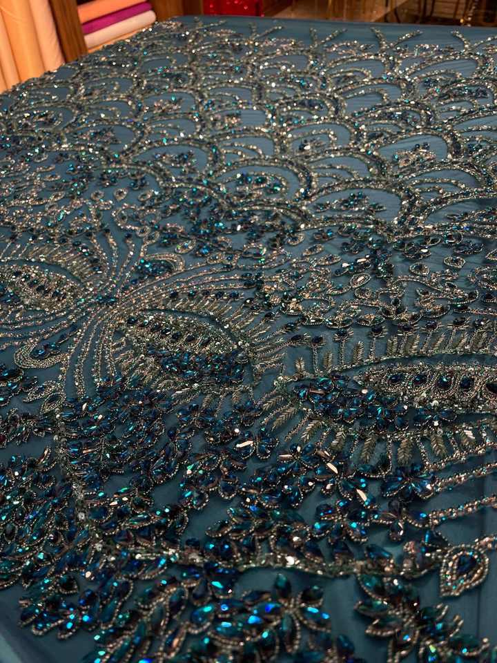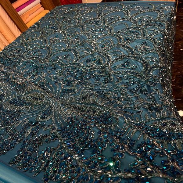 ผ้าลูกไม้คุณภาพสูงพร้อมงานปักลูกปัดและเลื่อมหนักสำหรับชุดแต่งงาน ชุดราตรี และการผลิตเสื้อผ้าดีไซเนอร์