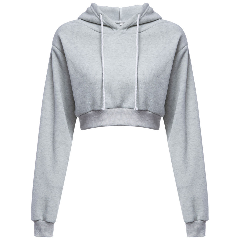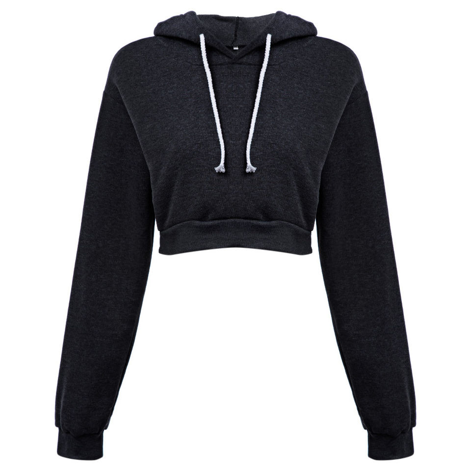 High Quality Ladies Loose Long Sleeve Pullover Polyester Cotton Blank Oversize Sweatshirts Grey Dark Crop Top Women's Hoodies