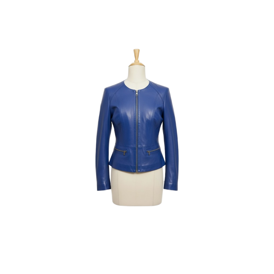 เสื้อแจ็คเก็ตแฟชั่นสตรีแบบสั้น-หนังแกะแท้ ผ่านกระบวนการผลิตและย้อมสีเรียบ กันน้ำ