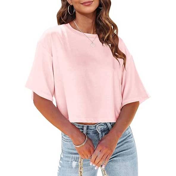 เสื้อยืดคอครอปสำหรับผู้หญิงทันสมัยคุณภาพสูงเสื้อคอกลมแขนสั้นพอดีตัวใส่สบายๆขายส่งในปากีสถาน