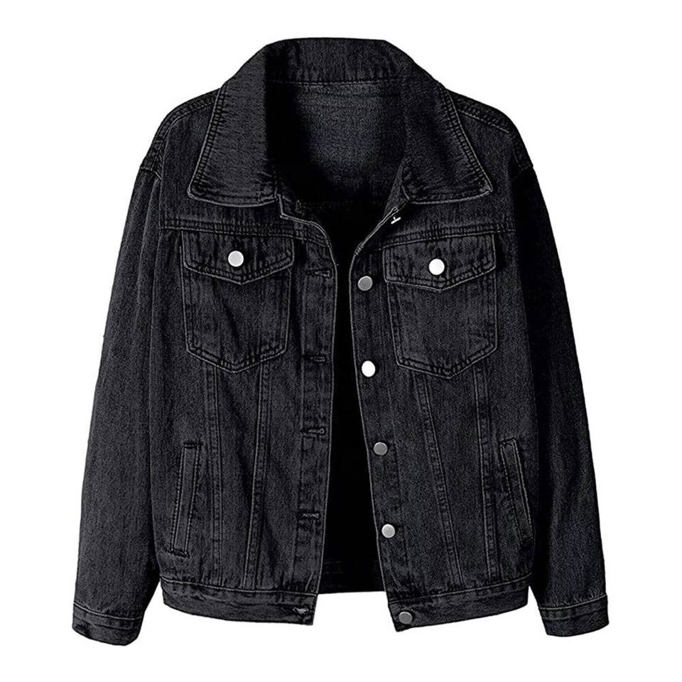 แจ็กเก็ตยีนส์สำหรับผู้หญิงสีดำลำลอง