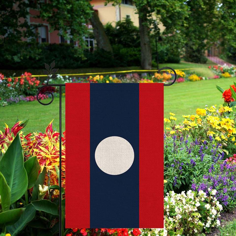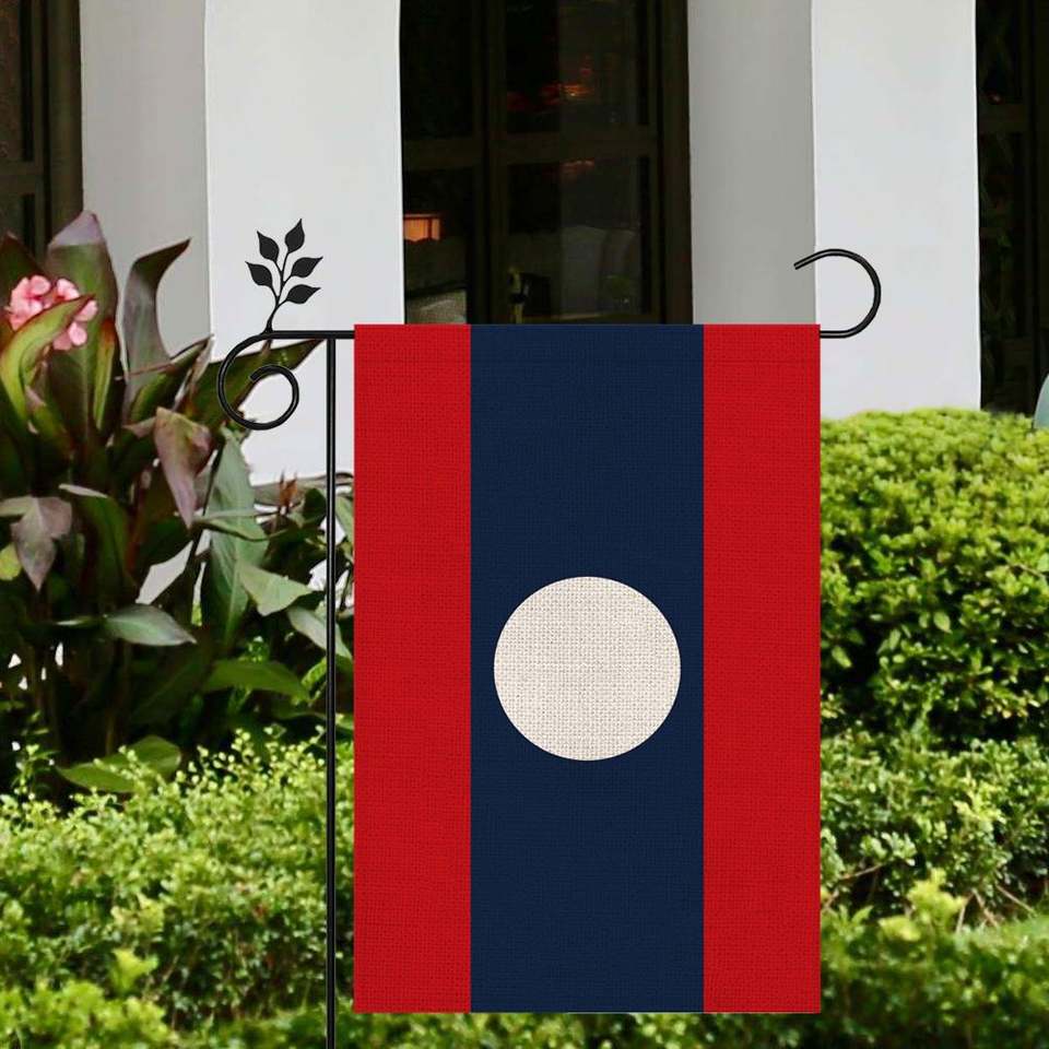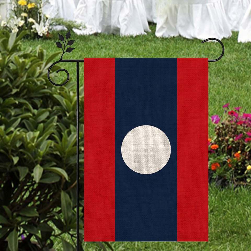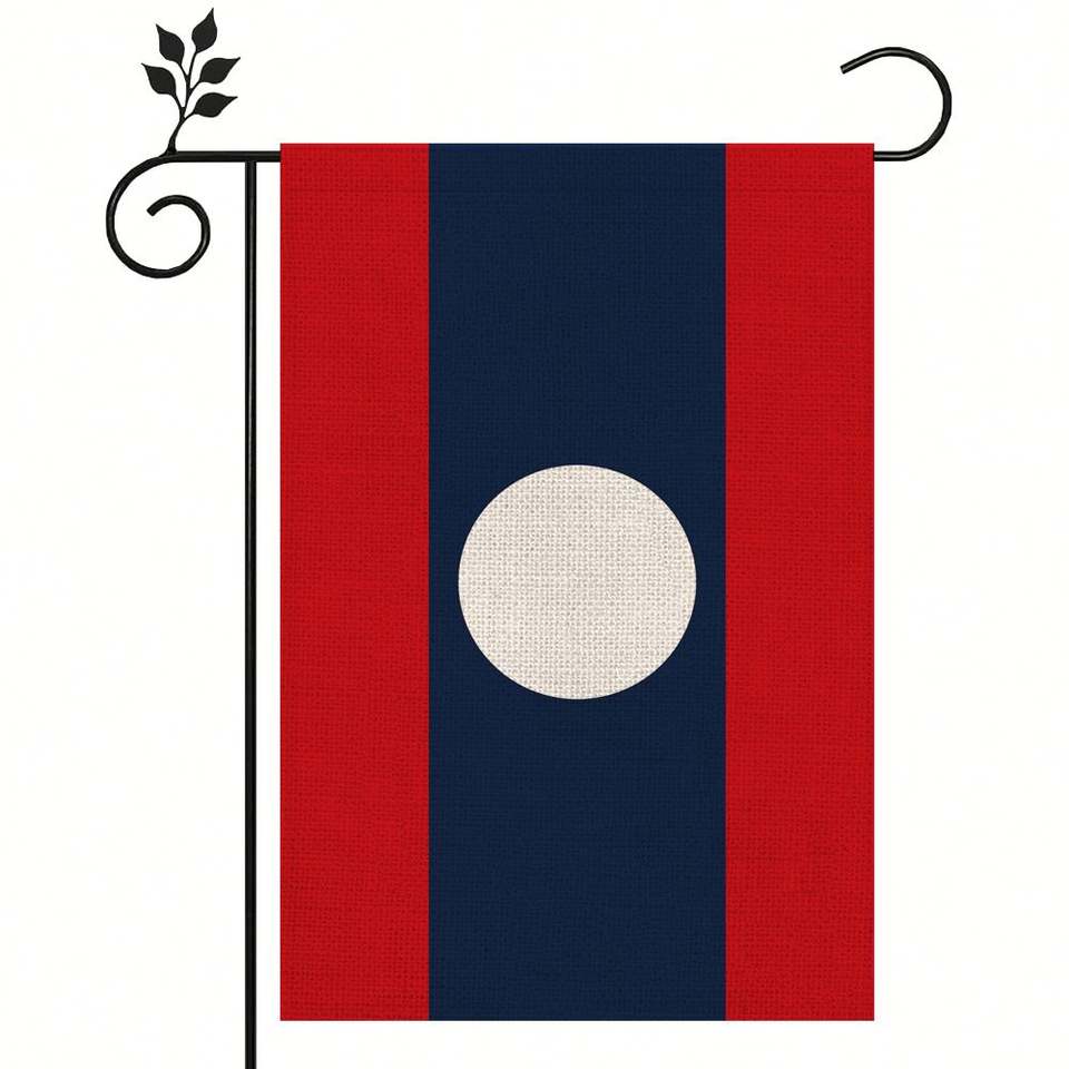 ธงชาติลาวคุณภาพสูง ผลิตจากผ้าลินิน สำหรับใช้งานกลางแจ้ง ขนาด 12*18 นิ้ว มีหลากหลายแบบให้เลือก