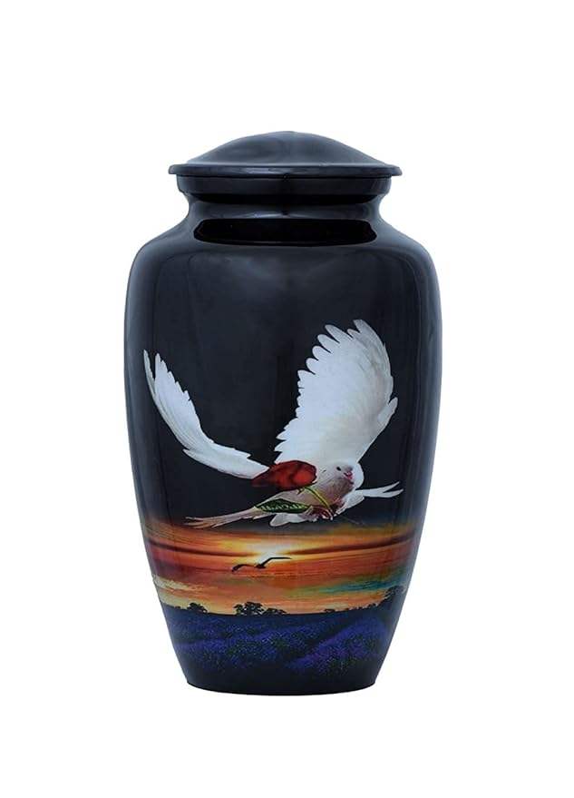 โกศเผาอลูมิเนียมขนาดใหญ่พร้อมรูปนกที่สวยงามอุปกรณ์งานศพแบบคลาสสิกสำหรับเก็บขี้เถ้า
