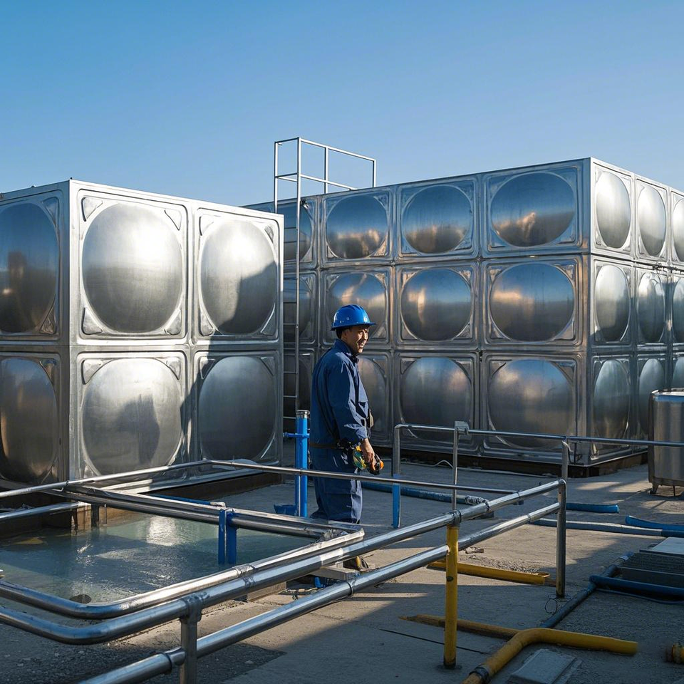 ถังเก็บสแตนเลสทรงสี่เหลี่ยมขนาดใหญ่220V สำหรับเครื่องจักรบำบัดน้ำงานตามสั่ง