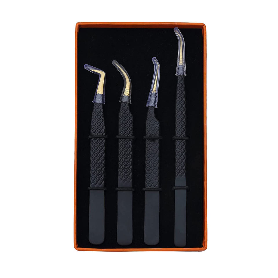High Quality Lash Extension Tweezers Stainless Steel 45 90 Degree Custom Logo Lash Extension Fiber Tip Tweezers
