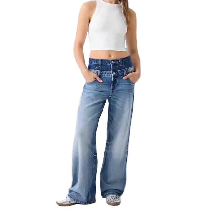 กางเกงยีนส์เอวสูงคุณภาพสูงรุ่นใหม่ล่าสุดสำหรับผู้ชาย สีวอชชิ่งลำลอง กางเกงยีนส์ทรงหลวมขาตรงผ้าเดนิม