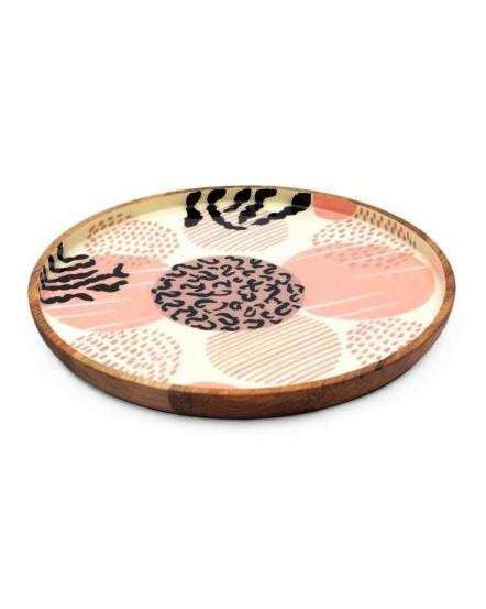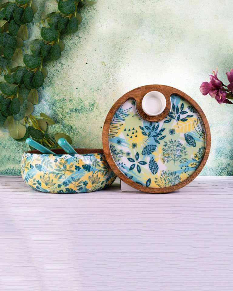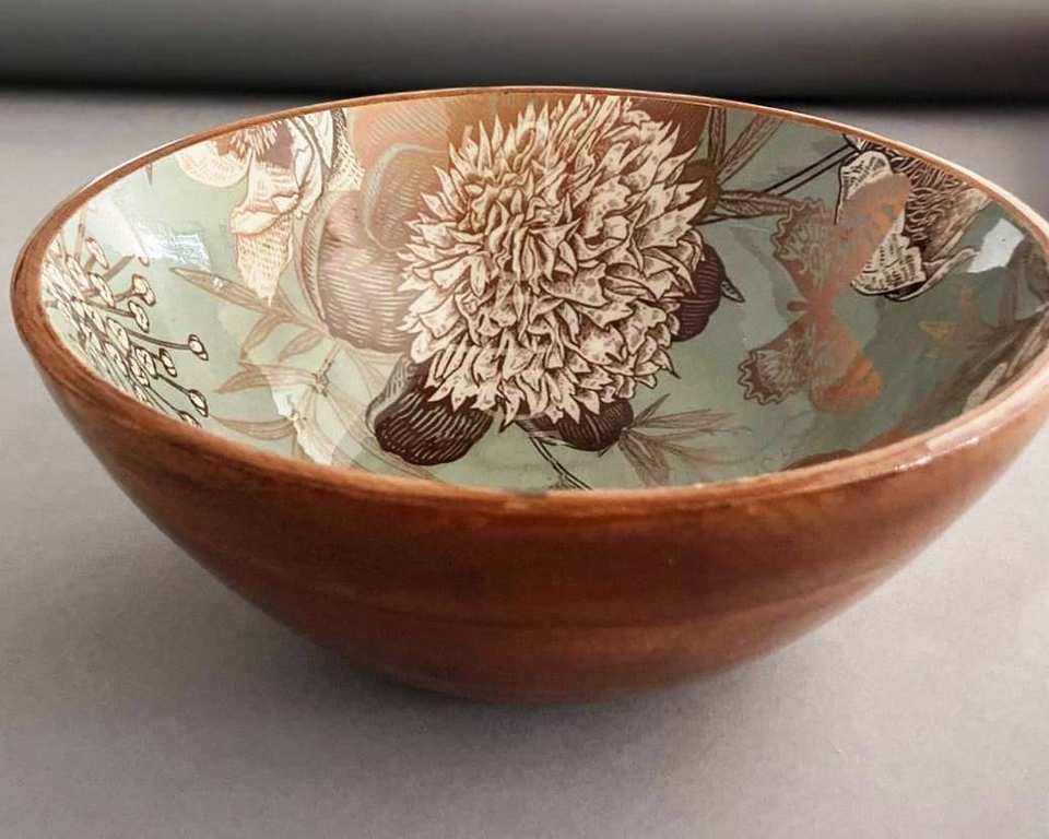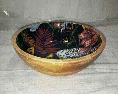 ชามไม้เคลือบทรงกลมขนาดใหญ่ทำด้วยมือชามเสิร์ฟสลัดไม้มะม่วงดีไซน์ใหม่ล่าสุดพร้อมลายดอกไม้เคลือบ