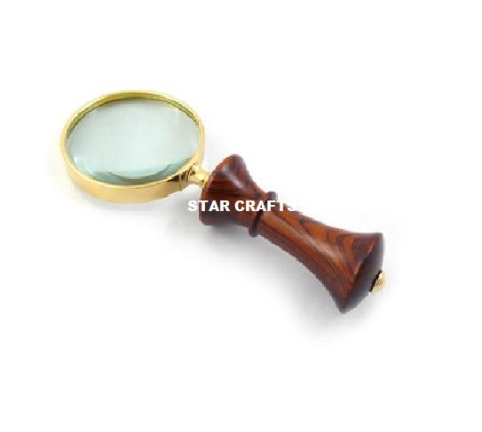 แว่นขยายพร้อมด้ามจับแตรทำจากไม้ของขวัญของเก่า