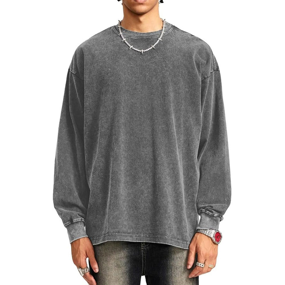 สเวตเชิ้ตแบบสัมผัสนุ่มสำหรับผู้ชายเสื้อกันหนาวคอกลมทรงโอเวอร์ไซส์สีพื้นโลโก้ออกแบบได้ตามต้องการ