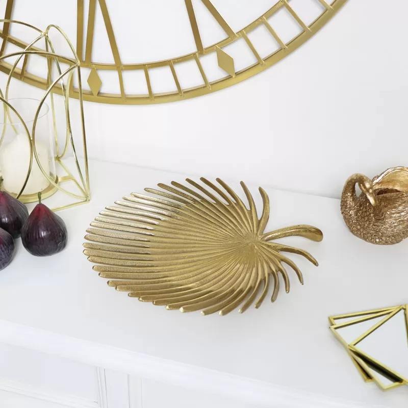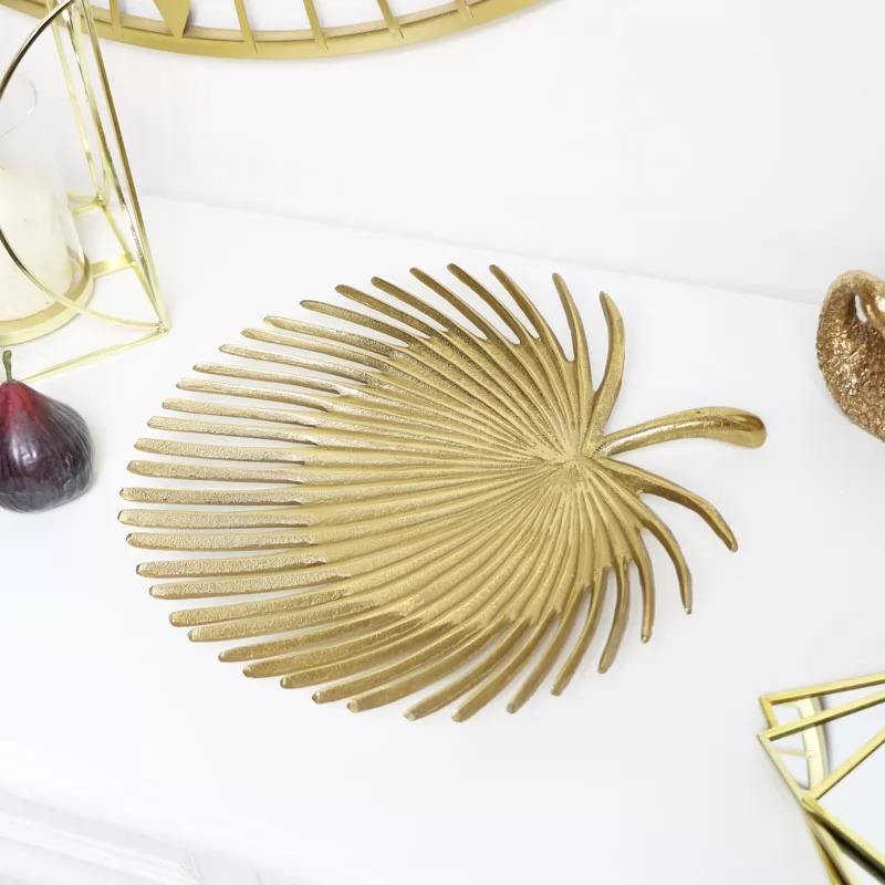 ถาดตกแต่งและเสิร์ฟรูปใบไม้คุณภาพสูงพร้อมตกแต่งสีทองสําหรับบ้านและร้านอาหาร