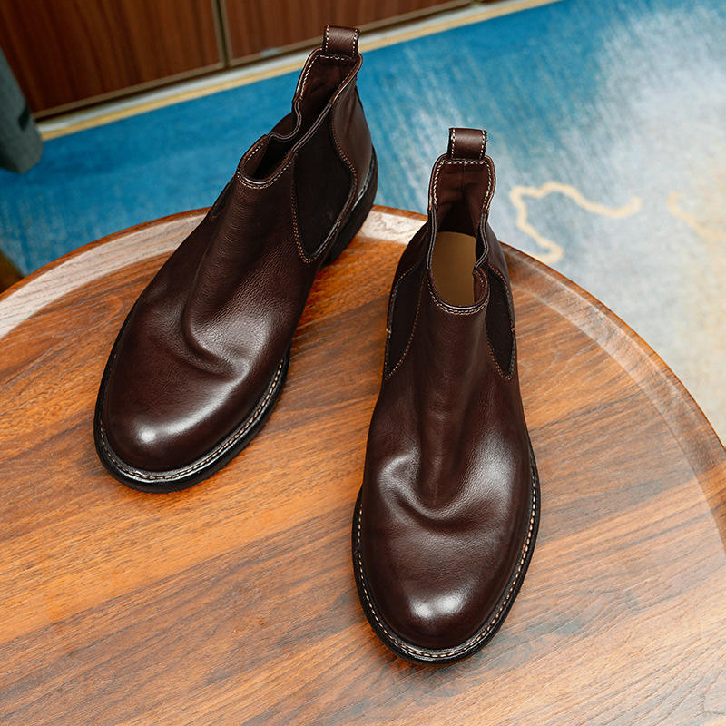 รองเท้าบูทหนังคุณภาพสูงแบบ Brogue พร้อมดีเทลลายฉลุและพื้นรองเท้าระบายอากาศได้ดี เหมาะสำหรับสุภาพบุรุษในงานสังสรรค์ทางธุรกิจ