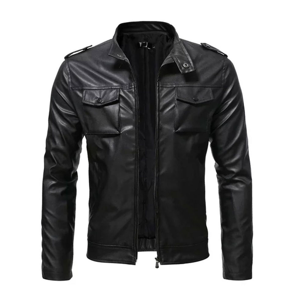 เสื้อแจ็คเก็ตหนังคุณภาพสูง พร้อมบริการพิมพ์โลโก้ตามสั่ง คอตั้ง กันน้ำ ระบายอากาศได้ดี มีไซส์พลัส บริการ OEM สำหรับผู้ชาย